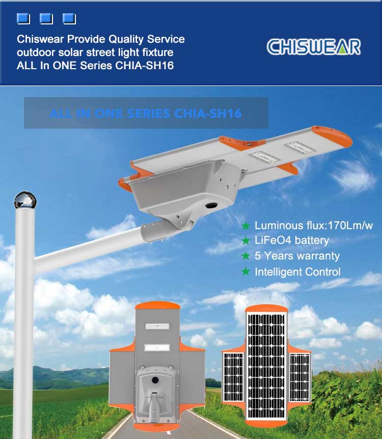 सर्व एक सौर स्ट्रीट लाइट मालिका CHIA-SH14, CHIA-SH16.CHIA-SH16 एलईडी सोलर स्ट्रीट लाइटसह IP66 वॉटरप्रूफ आणि लाईट हाऊसिंग डाय-कास्ट ॲल्युमिनियम मटेरियल बनवले आहे.