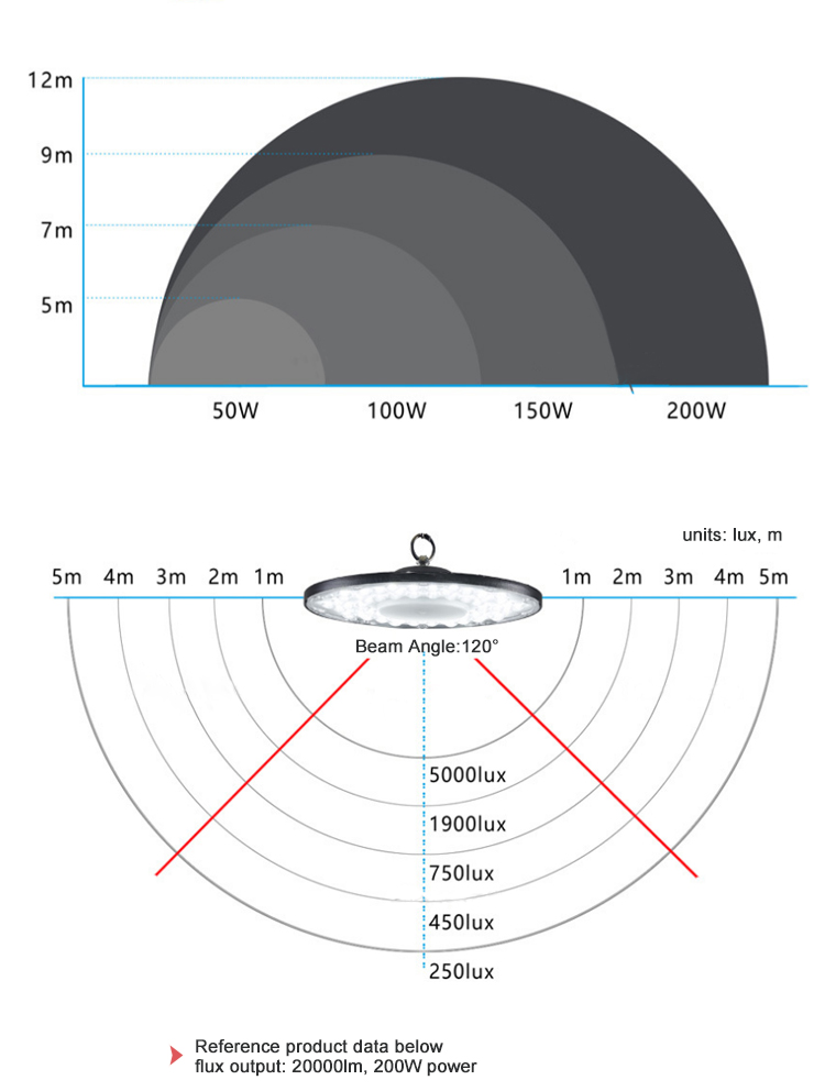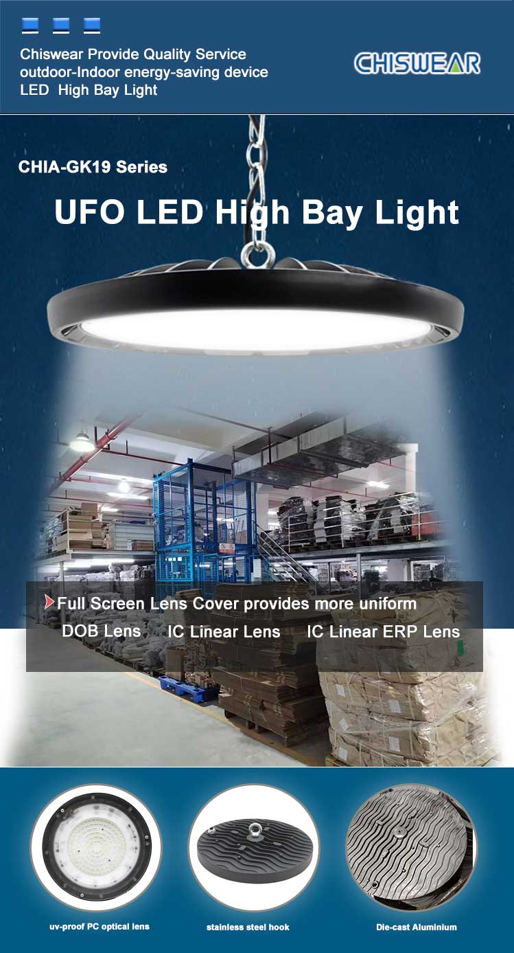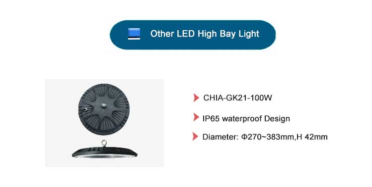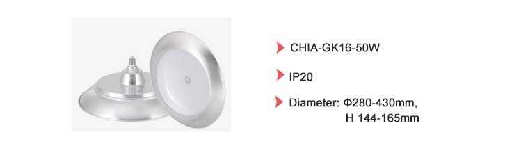 | CHIA-GK19-150W | 150W | φ290*50MM | AC220-240V | 90-100 lm/w | 6000-6500K | >80 | >0.9 |