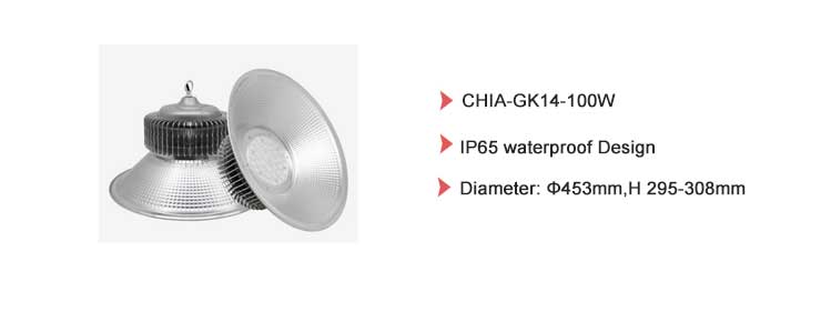 | CHIA-GK19-100W | 100W | φ250*42MM | AC220-240V | 90-100 lm/w | 6000-6500K | >80 | >0.9 |