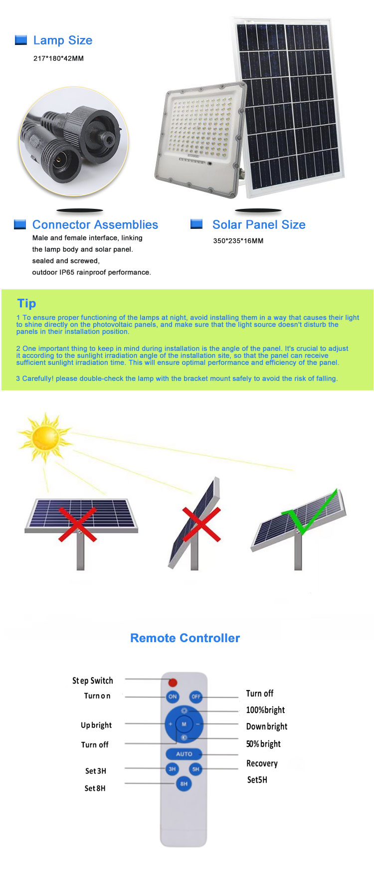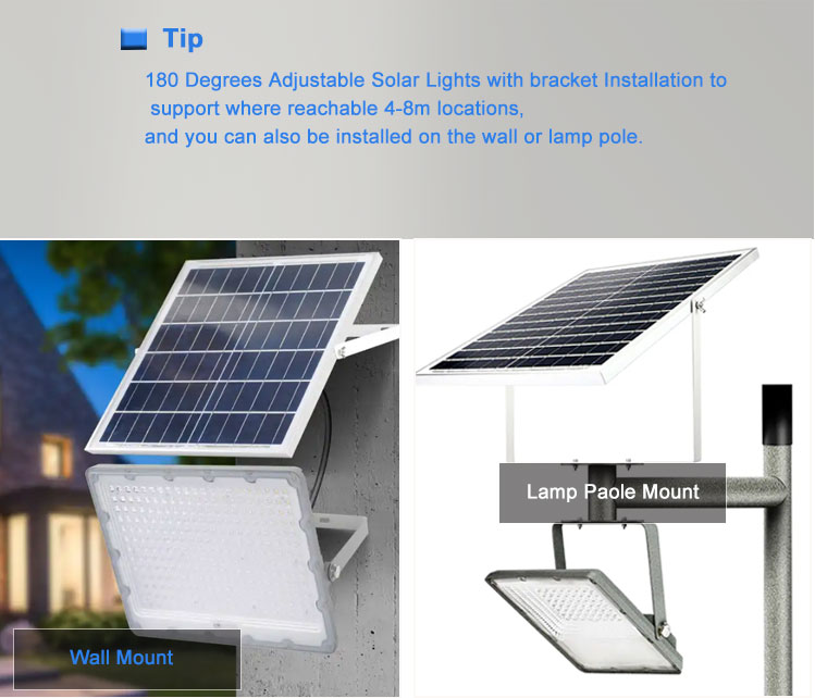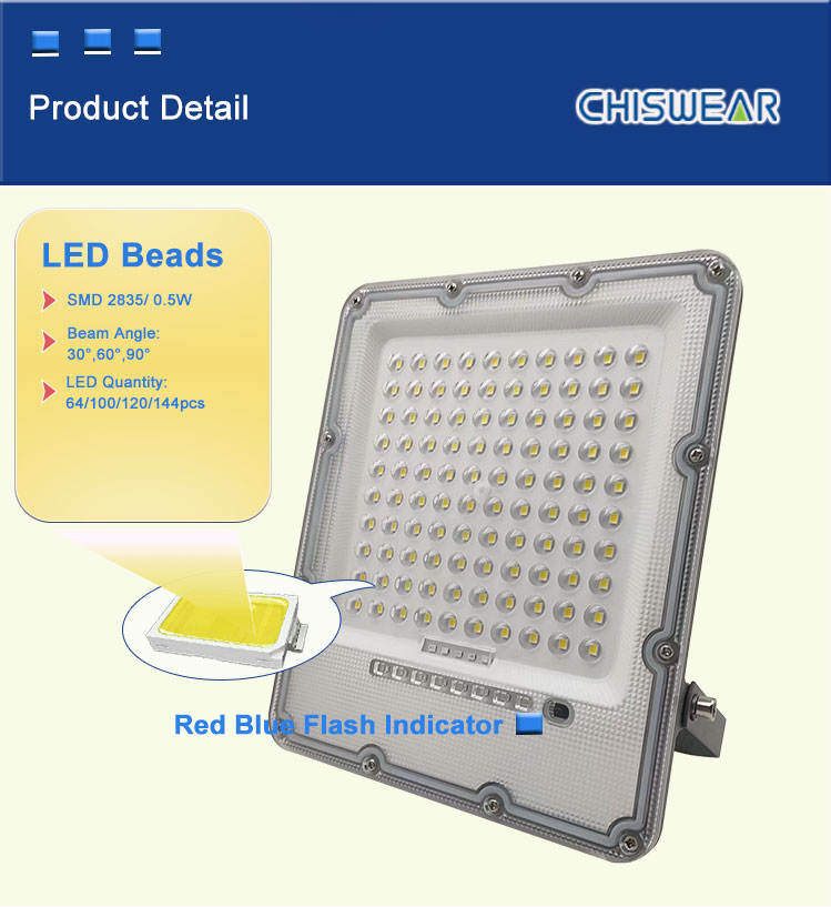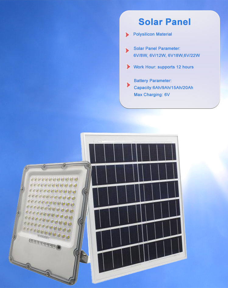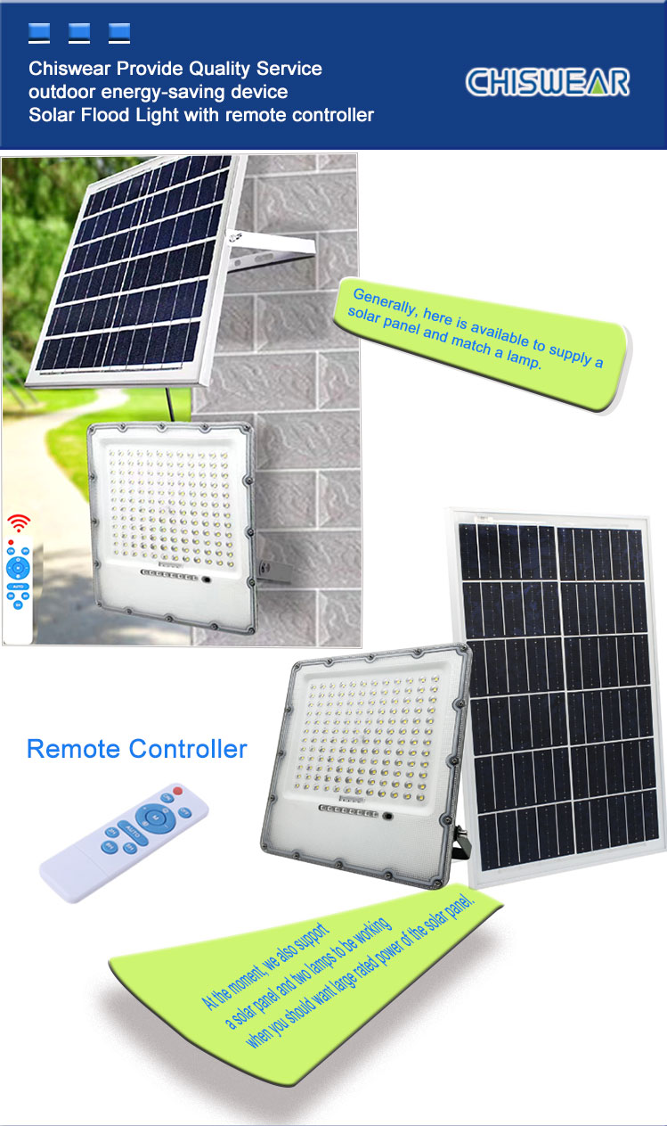 Lampa powodziowa z odlewanego aluminium o mocy 100 W, 300 W, zasilana energią słoneczną, z pilotem, wodoodporna IP65