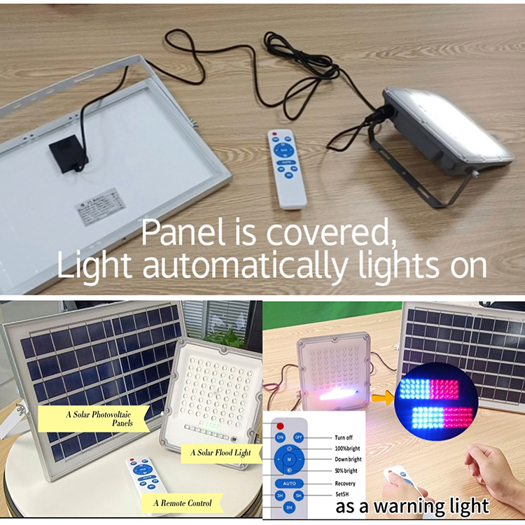 Mugihe icyuma cyizuba gitwikiriye kubwimpanuka cyangwa niba gishyizwe ahantu hijimye, amatara azahita amurika.Nta mpamvu yo guhangayika;urashobora gushira imirasire yizuba ahantu hacanye neza cyangwa ugakoresha igenzura rya kure kugirango uzimye.