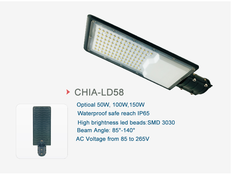| CHIA-LD58-100W | 100 Вт | L160 * W57 * H420 | AC220-240V | 85*140° | 90-100лм/в | 6000-6500К | >80 | >0,9 | 30000 | IP65 |