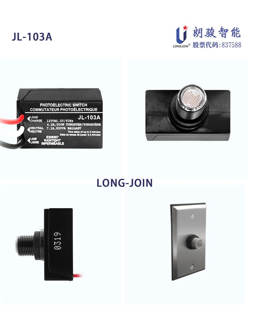 The JL-103 series of wired thermal photocontrollers are suitable for autonomously controlling channel and porch lighting according to ambient lighting levels. This series of products is UL certified and complies with the lighting control UL773A “Non-industrial Photocontrol Switch” standard. (here not include FE type)