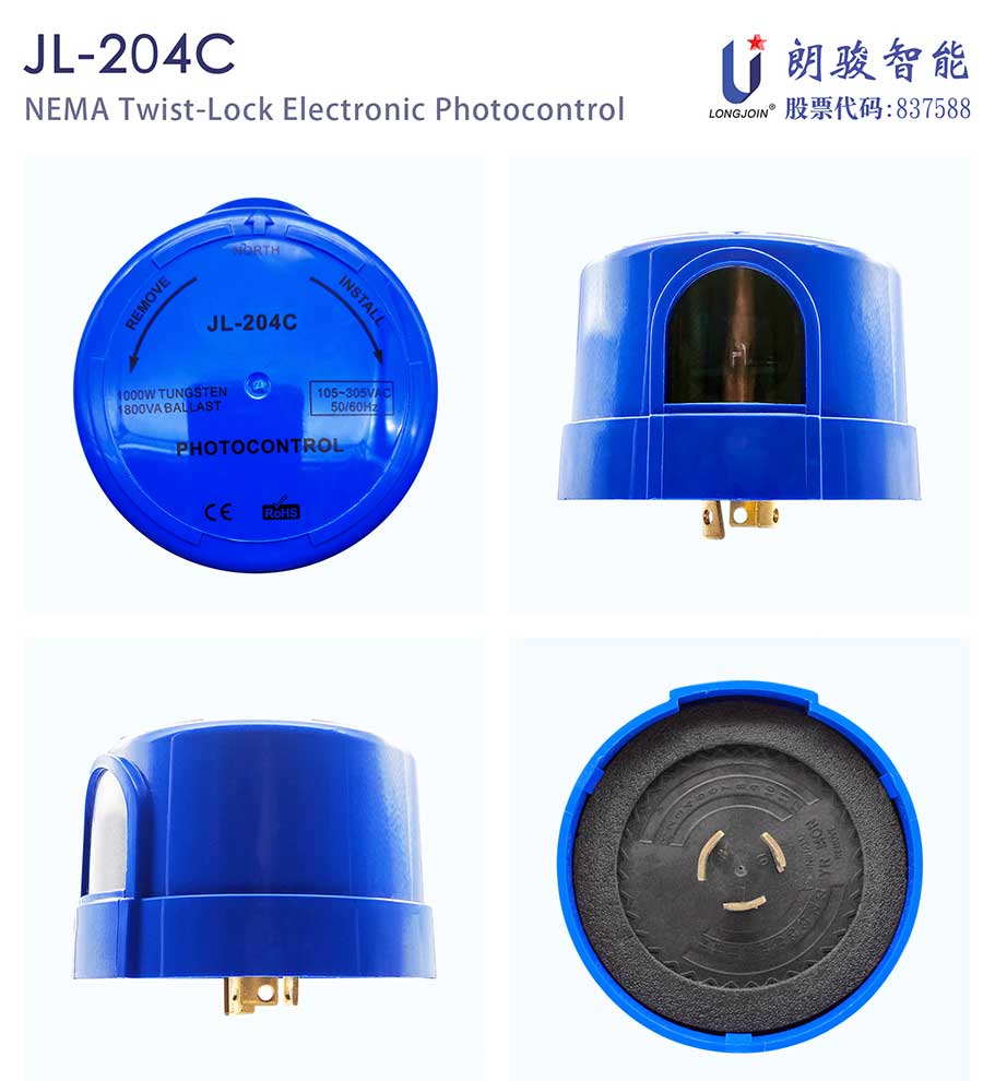 JL-204C twist-lock analog electronic light control switch is applicable to independently control street lighting, garden lighting, passage lighting, porch lighting and park lighting according to the ambient natural light level.