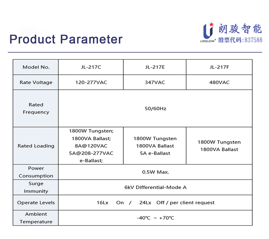 This series of products has designed a microprocessor circuit with infrared filter optical transistor, and is equipped with a surge arrester (MOV). In addition, the preset 5-20 second time delay control function can avoid redundant operation caused by spotlight or lightning at night.
