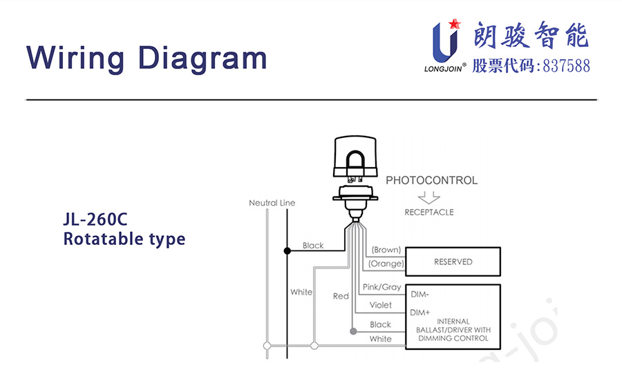 here a special type nema 7 pin receptacle. it has nice feature and ever waterproof than 240xa / 240Fxa receptacle. due to important some factor, JL260c receptacle terminal with nylon cover and tightly screwing waterproof gland cable connector. Especially in its rotation function, while the orientation of the lamp arm, you can adjust photocell sensor different angle on the horizontal toward sunlight. so easily operate, there are dimming and signal wire output keep up with JL-240xA with 7 pin receptacle the same.