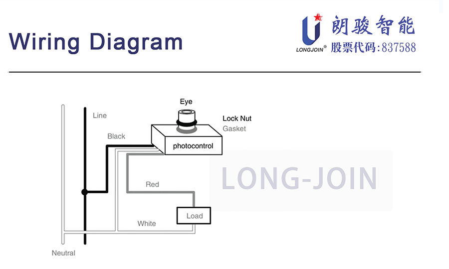 Disconnect power, remove junction box cover, place the photocontrol through knockout hole and fasten with locknut. Wire according to the diagram in below.