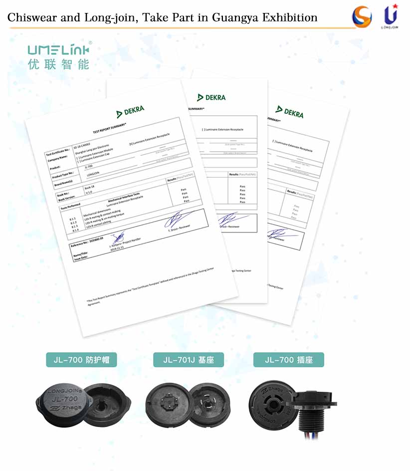 ان میں JL-701 Zhaga 18 انٹرفیس اسمارٹ ٹوئسٹ لاک اسٹریٹ لائٹ فوٹو سیل بیس، JL-700 Zhaga سٹینڈرڈ انٹیلجنٹ لاکنگ ٹائپ فوٹو کنٹرول ساکٹ، JL-700 Zhaga انٹرفیس ذہین لاک کنٹرولر ساکٹ حفاظتی کیپس، یہ تینوں Zhaga مصنوعات گزشتہ سال کے آخر میں DEKRA کوالٹی انسپکشن سرٹیفکیٹ جیتا تھا۔JL-701J Zhaga انٹرفیس فوٹو سیل بیس نے آؤٹ لائن ڈرائنگ، بیرونی قطر، مکینیکل سٹاپ، سیلنگ سطح، اور رابطے کے لحاظ سے معائنہ اور سرٹیفیکیشن پاس کر لیا ہے۔JL-700 Zhaga 18 سٹینڈرڈ سمارٹ ٹوئسٹ لاک فوٹو کنٹرولر ساکٹ نے ظاہری شکل، فٹ اور کانٹیکٹ پروڈکشن، انسرشن ٹارک، اور کانٹیکٹ ڈگری کے لحاظ سے معائنہ اور سرٹیفیکیشن پاس کر لیا ہے، جبکہ JL-700 Zhaga ذہین Phocell کنٹرولر ریسپٹیکل حفاظتی ٹوپی پاس کر چکا ہے۔ ظاہری شکل کی ڈرائنگ، بیرونی قطر، اور مکینیکل ٹیسٹنگ اور سٹاپ اور سیلنگ سطح کی تصدیق۔